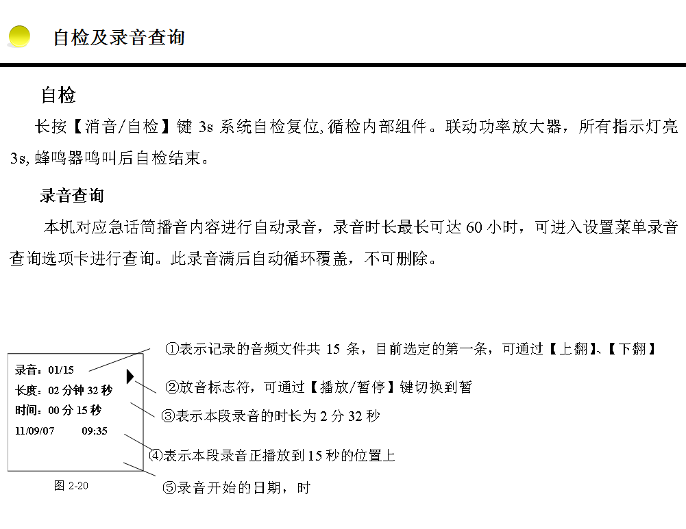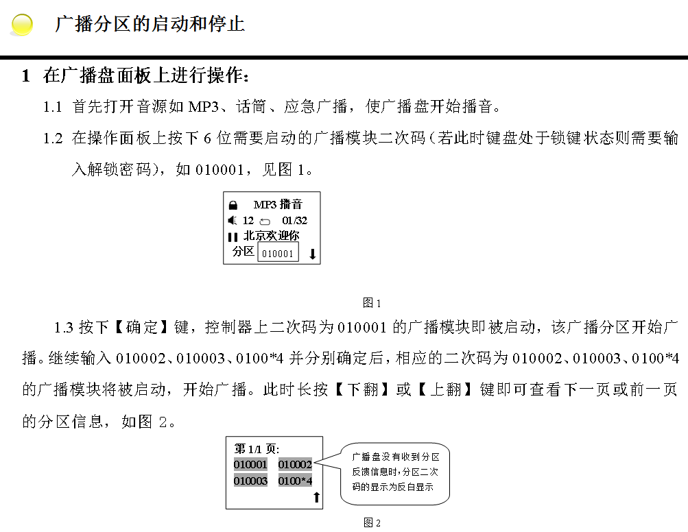 此播音模式播放的是外接音源中的音頻文件,按【外線】鍵進(jìn)入外線播音模式,作為背景音源,功率放大器輸出音量可調(diào)。