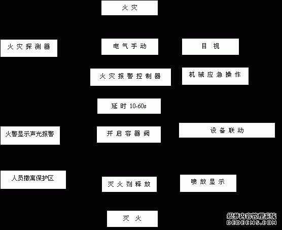 狀態(tài)。這時(shí),當(dāng)火災(zāi)探測(cè)器發(fā)出火警信號(hào)時(shí),控制器即發(fā)出火災(zāi)聲、光報(bào)警信號(hào),而不啟動(dòng)滅火裝置,需經(jīng)人員觀察,確認(rèn)火災(zāi)已發(fā)生時(shí),可按下保護(hù)區(qū)外或控制器操作面板上的“緊急啟動(dòng)按鈕”,即可啟動(dòng)滅火裝置,釋放滅火劑,實(shí)施滅火。但報(bào)警信號(hào)仍存在。